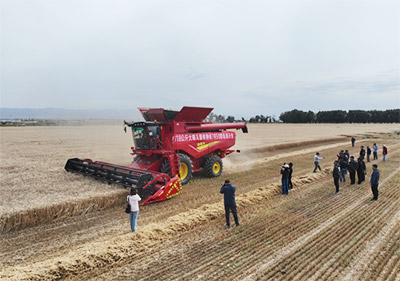 mg冰球突破豪华版7850籽粒收获机乌苏演示推广 助力全疆农机向“高质高效、智能绿色”迈进